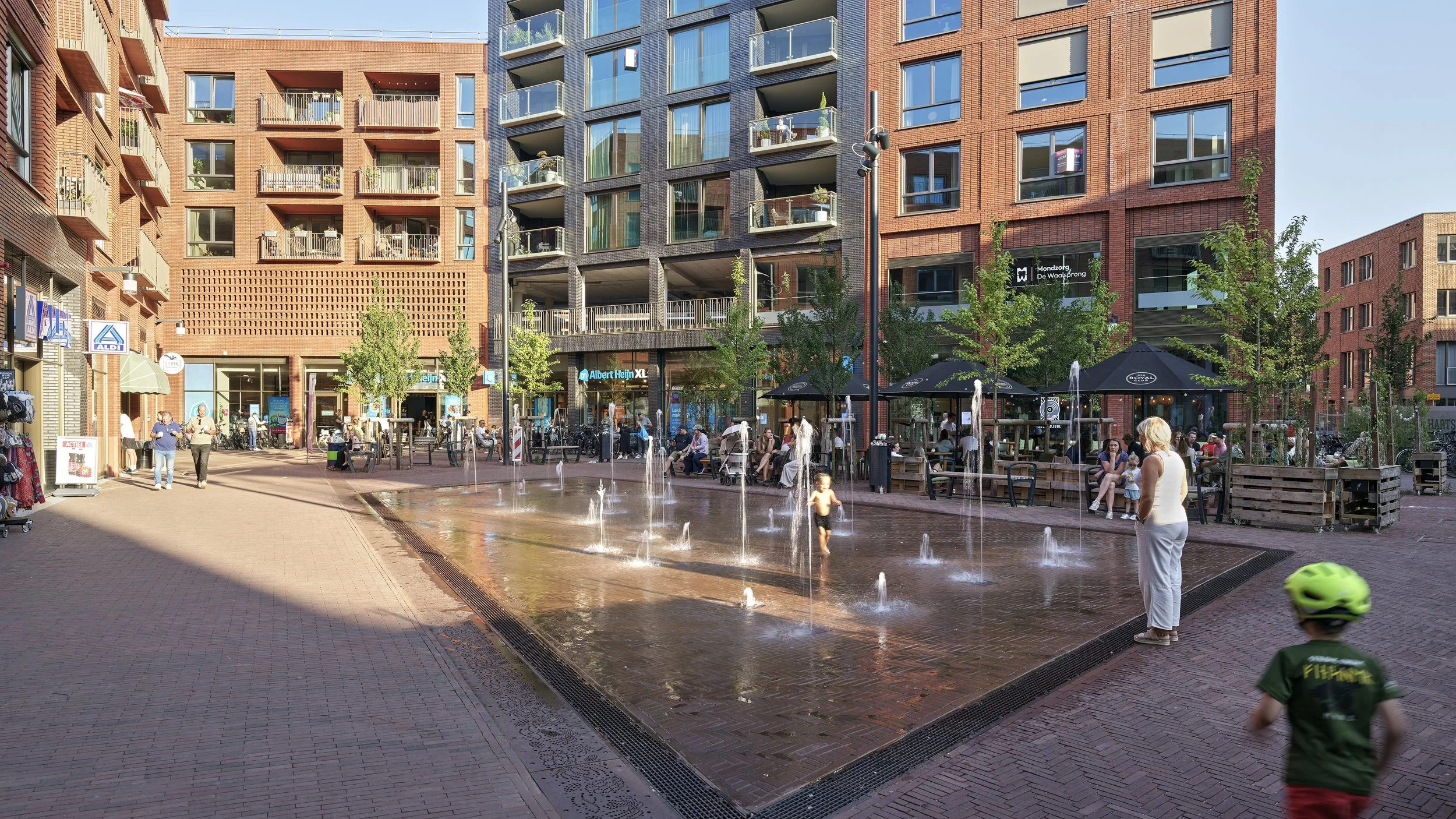 The main square is the beating heart of the new district. Around the square you can find a diversity of shops, supermarkets, restaurants and cafés. The square itself is suitable for both daily life and for special uses like weekly markets or seasonal events. With temperatures rising, the fountain on the central square of Hart van Waalsprong offers a much-needed moment of refreshment during summer. The shopping centre will also be the first energy-neutral shopping centre in the Netherlands.